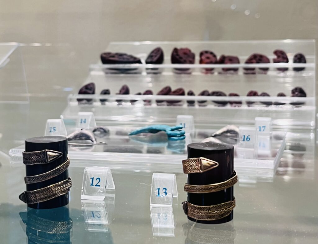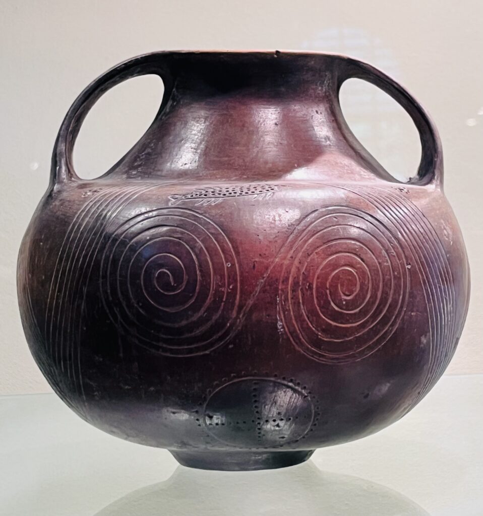 Fra le ceramiche presenti nel corredo, personalmente sono rimasta colpita da un vaso decorato con spirali concentriche, un motivo ornamentale comune nelle civiltà preistoriche e protostoriche europee, spesso associato a una simbologia cosmica o al richiamo al ciclo della vita, del sole e dell’acqua. Al di sopra delle spirali, è visibile chiaramente un pesce stilizzato, occorrenza che corrobora il legame con il mondo acquatico, la fertilità e il ciclo di rigenerazione. Si ha notizia, inoltre, dell’originale presenza di un coltello in ferro-probabilmente l’unico oggetto in questo materiale- il quale non fu recuperato, ma del quale esiste una descrizione fornita dagli scavatori. Questo tipo di coltello, comunemente rinvenuto nelle tombe laziali protostoriche, nelle sepolture femminili viene solitamente associato al ruolo di materfamilias. Strumento fondamentale per la preparazione del cibo, per la lavorazione della pelle e di altri materiali, il coltello simboleggiava il ruolo esercitato dalla madre nell’organizzazione della vita quotidiana e nella gestione delle risorse domestiche. Inoltre, nelle culture protostoriche, il coltello era legato a pratiche di sacrificio o di purificazione, pertanto rappresentava una sorta di amuleto protettivo nella transizione tra la vita e la morte. L’associazione diretta del coltello in ferro con il ruolo di materfamilias nelle tombe femminili suggerisce un’interpretazione significativa del potere femminile nella protostoria laziale. Tale autorità, forse, si estendeva oltre le funzioni puramente domestiche, giungendo persino a includere la gestione economica, la leadership rituale o persino l’influenza politica all’interno della famiglia regale. Per una descrizione completa ed accurata del corredo si consiglia la lettura dell’articolo dell’archeologo Franco Arietti, al quale – come già scritto – va il merito di aver recuperato con pazienza e scrupolosità questo tesoro, in coppia con il grande Bruno Martellotta. Il corredo della Tomba Principesca del Vivaro è attualmente conservato presso il Museo delle Navi di Nemi.