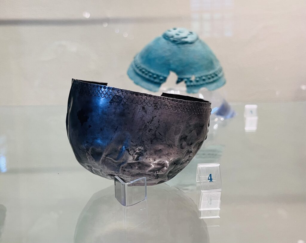All’interno della tomba, la defunta recava in mano una coppa emisferica d’argento, un gesto che riflette l‘antichissima usanza detta “dell’offerente”, nota anche sui Colli Albani a partire almeno dal X secolo a.C. Questa pratica è strettamente legata al concetto di convivio -ovvero del banchetto- e al ruolo del defunto in esso, anche dopo la morte. La coppa emisferica era un oggetto di grande prestigio, simbolo dello status sociale dell’individuo sepolto. La sua collocazione, spesso all’altezza delle mani, indica che il defunto, anche nella sua condizione post-mortem, era associato a pratiche di banchetto, centrali nella vita aristocratica dell’epoca. Sebbene le fonti non descrivano esplicitamente il rito, le pratiche funerarie nel Latium Vetus includevano il compimento di diversi riti e la dedica di offerte di cibo e altre sostanze al defunto. I banchetti periodici presso la tomba erano un modo per i vivi di condividere un momento con i defunti e le divinità degli Inferi, offrendo loro nutrimento attraverso cibo e bevande (curiosità estemporanea: in Cina la pratica dei picnic presso le tombe dei defunti è una pratica ancora consolidata durante il festival di Qingming, che si svolge in primavera). La ricorrenza di coppe emisferiche d’argento in tombe coeve appartenenti a uomini e donne di alto rango – che ritroviamo, ad esempio, anche nella Tomba 15 di Castel di Decima – suggerisce una condivisione di simboli di status e rituali tra le élite emergenti nel Lazio protostorico. Questo indica una continuità di tradizioni e un’interconnessione tra le diverse comunità aristocratiche della regione.